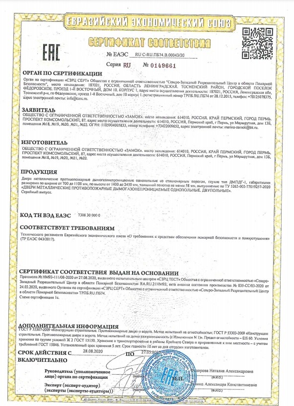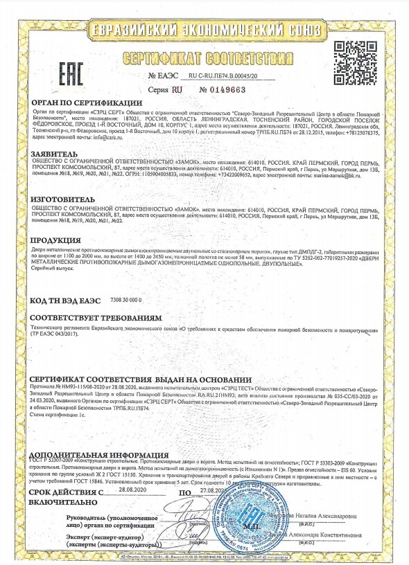 Евразийские сертификаты на нашу продукцию